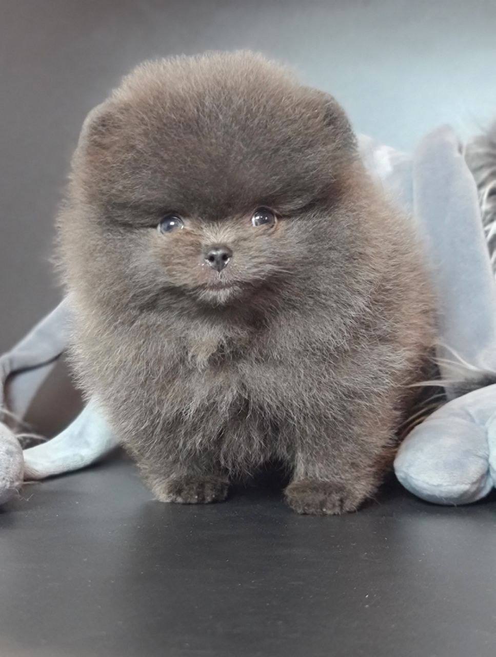 Meet Bruno, a handsome chocolate brown Pomeranian with a dense, plush coat and the most soulful eyes. This little guy is full of character and charm. Bruno has a confident and outgoing personality, making him a natural leader among his littermates. He’s playful, curious, and loves to explore his surroundings. Bruno is also incredibly affectionate and forms strong bonds with his family. He’s great with children and other pets, and he’s already showing excellent progress with socialization and basic training. Up to date on vaccinations and deworming, Bruno is ready to bring warmth and companionship to his forever home.