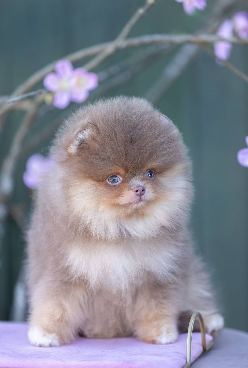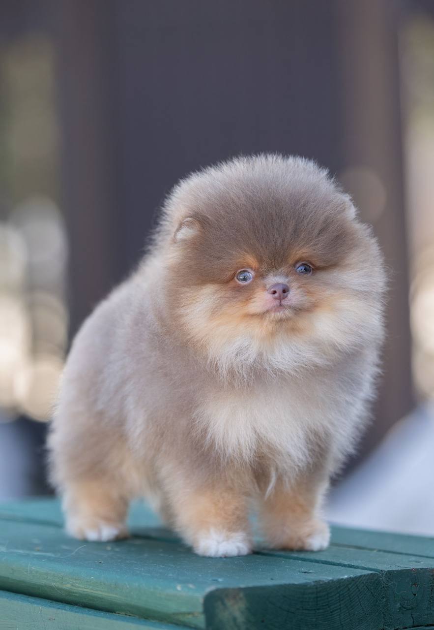 Meet Hazel, a stunning sable Pomeranian with a gorgeous multi-toned coat in warm caramel, cream, and brown hues. Her fluffy teddy bear appearance and captivating blue-gray eyes make her absolutely irresistible! Hazel is a confident, curious explorer who loves adventure and cuddles equally. She’s smart, affectionate, and quick to learn. Well-socialized and vet-checked, this beautiful girl is ready to bring endless joy to her forever family!